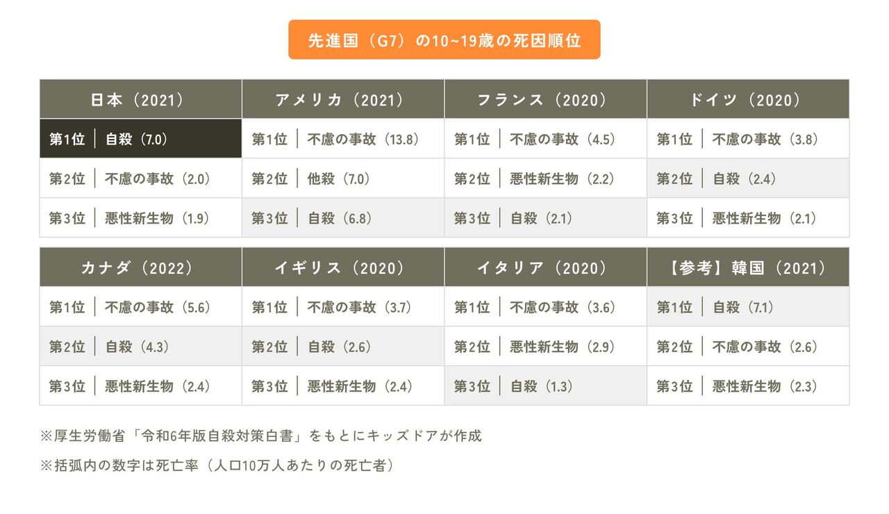 アメリカ、自さつが日韓と同レベルなのにその上に事故と他さつかぁ