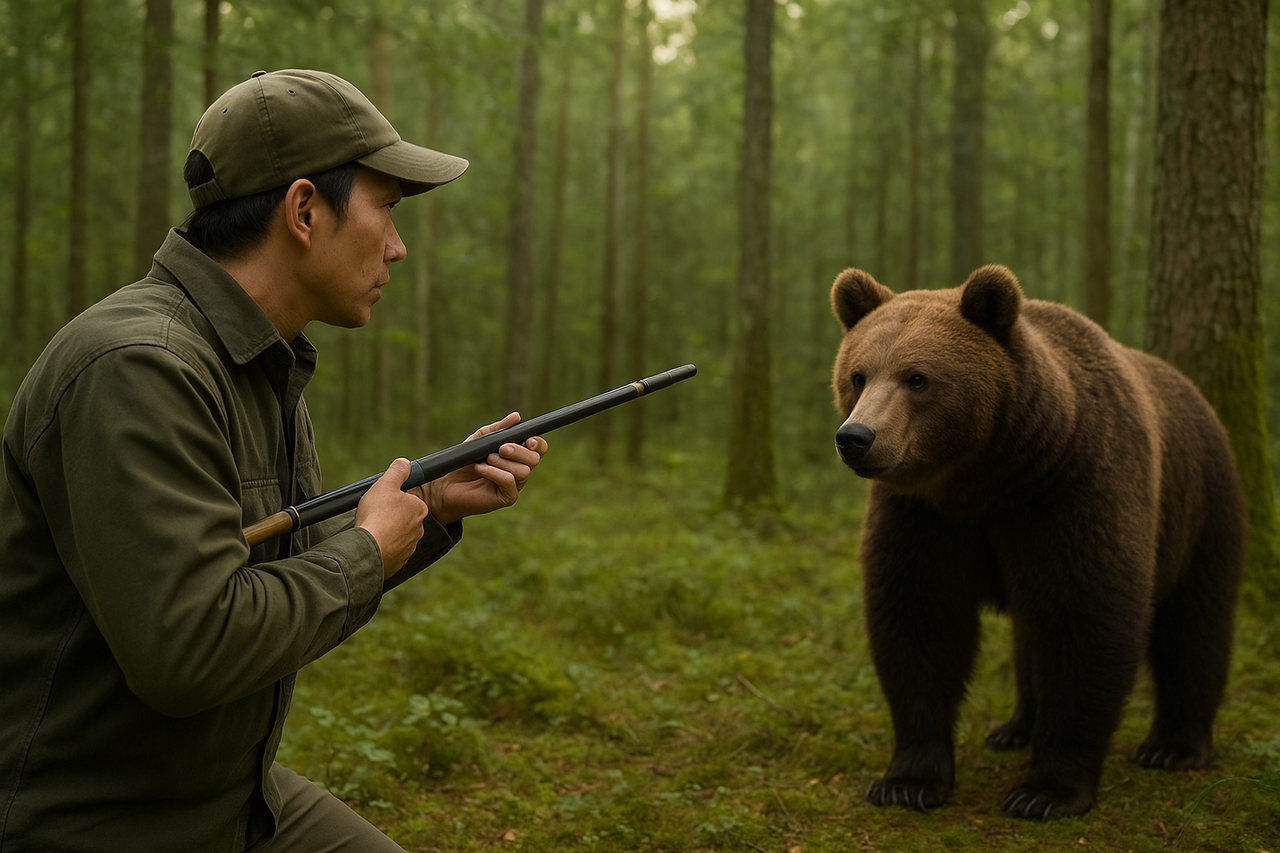 クマ駆除のニュースで吹き矢っぽいの持ってるおっさん映ってたから見間違いだと思ってたけど現場では本当に吹き矢でクマに挑んでるんだな