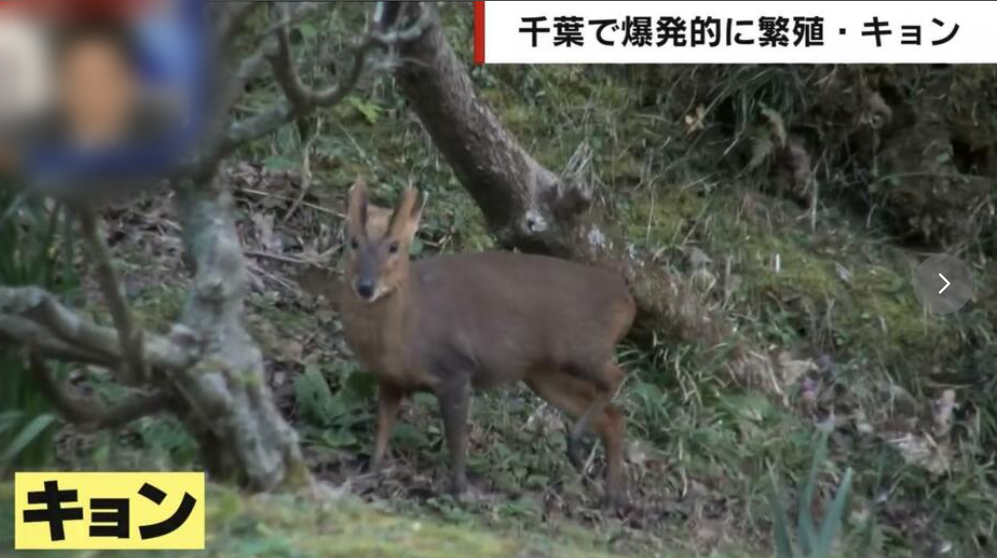 つぶらな瞳で周囲を警戒しているのが、特定外来生物に指定されている「キョン」です。台湾などが原産でシカ科のキョンは中型犬ほどの大きさで、人間を見つけると素早く逃げていく警戒心が強い動物です。愛くるしい見た目の一方で、キョンによる食害が深刻化しています。