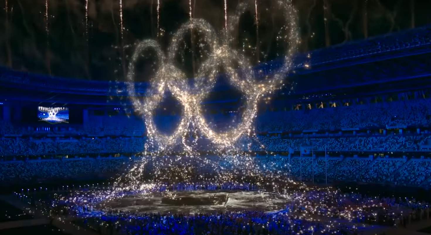 2028年のロサンゼルス大会に向けた引き継ぎ式ではトム・クルーズがワイヤーに吊されて、場内へ落下。選手たちと次々とハイタッチを交わした。その後、五輪旗が掲げられたバイクにまたがり、競技場を後にした。映像に切り替わり、パリの街並みをバイクで疾走し、空港へ。飛行機に乗り、到着した先はハリウッド。五輪旗はロサンゼルスのメモリアルコロシアムに運ばれた。