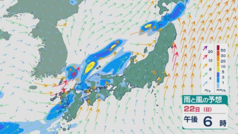 今週日本列島に日差しと猛暑をもたらした太平洋高気圧は日本から離れ、22日(日)午前9時の予想天気図では前線はその後南下しそうです。